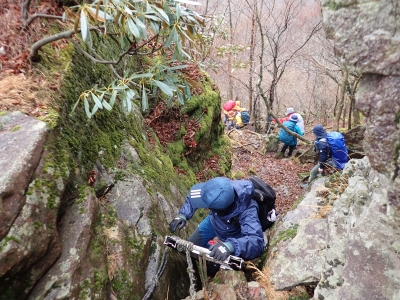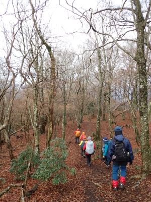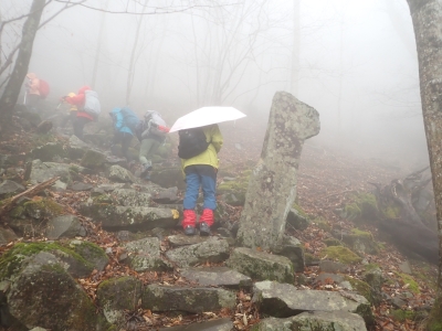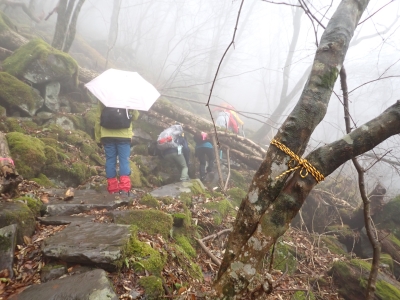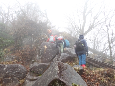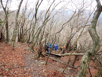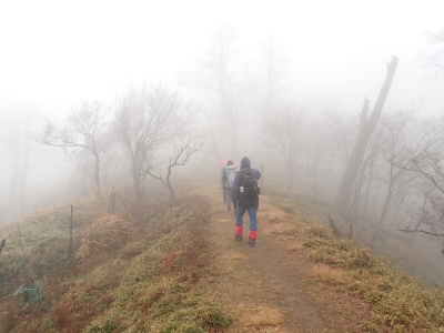 アタック山の会の例会山行は長らく神殿改修工事で中岳への通行ができなかった英彦山。青空が広がるのを期待したが、下山するまでガスで視界は広がらなかった。それに高度上げると寒さは厳しく、中岳での避難小屋では震えながら食事をした。これも良い経験だ。南岳へ往復する予定だったが、メンバーの披露等も考慮し、CLのM氏の決断で早々に下山することにした。もちろん私も賛成である。とにかく楽しい登山のはずが、過酷になるのは目的に反することだ。北西尾根を久しぶりに歩いたが、やはり気持ちの良い尾根だ。今回は車を豊前坊と野営場(キャンプ場)の駐車場にデポしておいたのでかなりのショートコースだったが、寒さのせいで結構体力を消耗したようだ。それでもメンバー皆、無事下山した時は笑顔で溢れていた。こんな天候でも楽しめたのは皆のおかげだ。今日も山に自然に仲間に感謝!!。