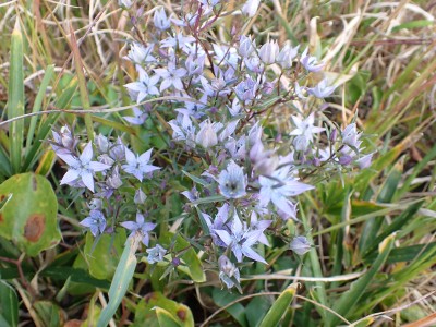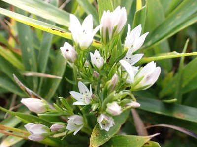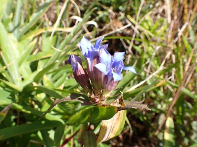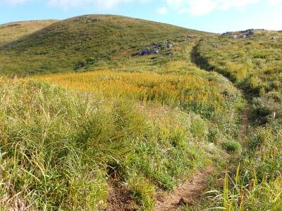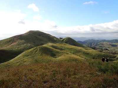 『うぅさむぅ』車から降りると思わず声に出た。見上げると空は冬模様。ポツポツと雨が降り出したのでスマホで雨雲レーダを見たが雨雲は見当たらない。予報は「曇り時々晴れ」となっている。雨具を着るほどではないが、薄手のウィンドパーカだけではとても寒いので、その上から雨具を着ることにした。そうこうしていると車が続々と狭い駐車場に入ってくる。今日のお目当てはセンブリとウメバチソウだ。中峠から四方台を目指す。そして貫山を目指すが、今日はその手前で林道を歩くことにした。鬱蒼とした道は、以前よりも荒れた感じで暗い。樹木が成長して陽射しを遮っているせいだろうか、ツル科の植物がほとんど消えていた。もちろん「山芋」もだ。この林道の途中から貫山頂上への道があるはずだが、それらしい目印があったが以前と変わっていて明確でない。目の前から男性が1名現れた。思わず「珍しいですね、この道を歩くとは」と声をかけると初めて歩くとのことだった。「熊は出ないと思うけど気をつけて」と心の中でつぶやいた。四差路に出て小穴を見ながら中峠に戻り茶ケ床園地へと舗装道を歩く。そして思わぬ出合い。メンバーのHさんが一人で歩いてくるではないか。せっかくなので「ウメバチソウのたくさんある場所へご案内」と言うことで再び四方台方面へ。花々を見て楽しんで四方台の肩でのんびりと絶景を眺めながらランチをしているとこれまた偶然、念仏坂(仮称)を登り切って現れた登山者が何とYさんだった。Hさんは思わず立ち上がってYさんとハグをして出合いに喜んでいた。何年も会ってない家族のように。私も仲間に加わりたかったくらい嬉しいのが不思議だ。ランチを終え、今度はYさんに花々を楽しんでもらい茶ヶ床園地に戻った。HさんとYさんは観察センターへ降った。茶ヶ床園地の駐車場は満車で次から次へと車が来るので出られなくなってしまい、見かねた人が交通整理をしてくれて無事脱出。感謝です。観察センター駐車場着くとYさんと合流。公共交通機関で来たYさんを私の車に乗せて途中でお別れ。目的の花々に出会えた上に、思わぬ偶然の出合いに感激する今日の平尾台だった。今日も自然に山に仲間に感謝!! |