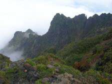 | 虎ケ峰、鷲ケ峰 | 天狗の舞台(この上は広い) | 奥のピークが高岳(天狗の舞台より) |
