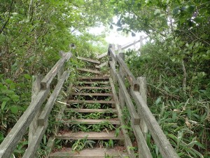 | 木の階段を上がると | 地蔵峠(7:52) | 眺めが良いとあるが・・・・ |