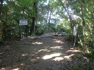 | 山頂からの眺め | 山頂にて(9:36) | 下山時でルートを間違えやすいので道標がある(10:04) |