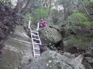 | 岩壁の間を通る | 見上げる | 家内に先に降りてもらう |