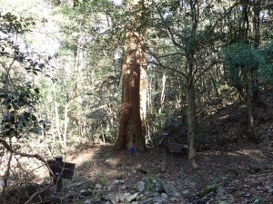 | これまた大きな杉の下にベンチ | 歩きやすくなった | 尾根から谷へ |