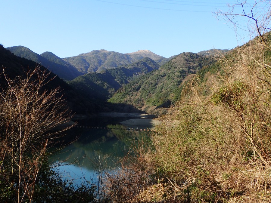 | ▲ダム湖の舗装道(サイクリングロード)から見た福智山 | ||