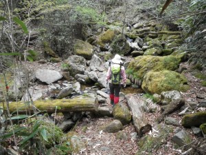 | 右岸を歩く | スズタケの登山道となる | 川原を横断する |
