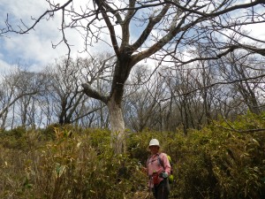 | スズタケの道を降るが | 再びこのピークを登る | ブナ林のきれいな斜面 |