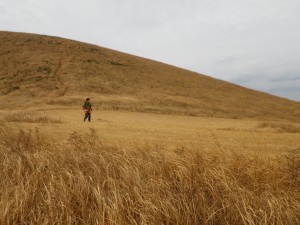 | 火口縁を歩く | 福江空港が見える | 海が見える |