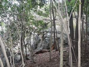 | 石壁の横を通過 | 見上げると | 同じ低木が続く |
