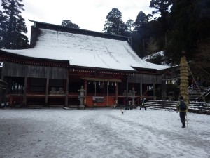 | 奉幣殿(9:54) | お神酒 | 雪は少ない10:07 |