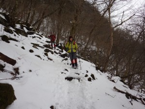 | これが隠れるくらい降雪することもある | この辺りはシオジ林 | 望雲台との分岐(13:23) |