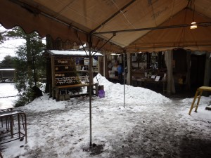 | 東屋で休憩してアイゼンを装着(10:30) | 雪は次第に深くなる | 巨石と巨木 |