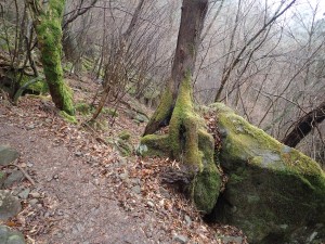 | バードラインとの合流点(12:32) | 岩にしがみつく木 | 苔がきれいだ |