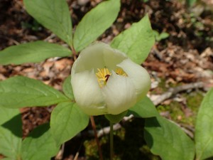 平成29年4月30日(日)天気 晴れ ■出発時間:8時頃 ■メンバー:単独 月末の仕事を何とか終わらせて4月最後の山歩きをする。 GWは、家族が集まるので私だけ家にいないわけにはいかない。「山は逃げない」とそう思うのだが、いつの日か「元気なうちに色々と歩いておきたい」と思うようになってきた。歳を重ねたせいであろう。いつまでも青年の気持ちのはずが・・・・・。 さて昨年の4月29日に英彦山を歩いたが、その時はヤマシャクヤクの花は残りわずでシャクナゲが最盛期であった。 今年は、何でも遅いようなので今がベストではないかと期待を膨らませて歩くことに。 豊前坊の駐車場は、思ったより車が少ない。薬師峠へと車道を歩いて裏彦ルートへと取りつく。杉林から尾根にとりつくと期待のミツバツツジは花芽もない状態。崖っぷちのシャクナゲは未だ花芽が固く閉じられている。 これはもうヤマシャクヤクに期待するしかない。北岳との分岐からケルンの谷へと山腹を歩く。先行の男性二人が立ち止まって話をしている。「花がありますよ」と声をかけられた。 「良かった」と思わず。ヤマシャクヤクは咲き始めのようで未だ数はないが、咲いていた。 しかも7年前に見た時よりも株が増えているように感じる。このまま増えることを願う。 ケルンの谷から南岳と中岳の鞍部を目指し、谷を遡上する。 シャクナゲの群生地に入り、少しウロウロしていると、何と花をたくさんつけたシャクナゲが陽ざしを浴びていた。とてもラッキーだった。 このルートももう以前のように迷うこともないし、マイナールートとは言え、今日も3グループの登山者とすれ違う。 最後の急斜面は落石に注意だ。多くの人が歩くようになったとは言え、正規の登山道ではない。当然ながら整備はされていないので落石も起こりやすいので注意だ。 中岳の上宮に着くと賑やかな人の声がする。小屋のある山頂を見下ろすと大勢の学生がいる。登山者で賑わう時間でもあるが、今日は隅で静かにランチタイムを過ごしているようだ。私もこの賑やかな場所から避難し、北岳へ向かういつもの岩場のテラスでランチタイムをとる。眺めも良く、静かだ。山はやっぱり静かでいてほしい。 ランチタイムを終え、北岳への大好きなルートを歩く。北岳では清掃作業?の方が二人いた。北岳の山頂から南に眺めを楽しもうと歩を進めると死体?と思いきや女性の方が昼寝をしていた。邪魔しては申し訳ないと静かに退散。 北岳から高住神社へ新緑や小さな花を楽しんで歩く。 チュルチュルチュルチュルと鳴くミソサザイを目の前にして高住神社に無事下山。 今日も山に自然に感謝!! ■コースタイム 豊前坊-(15分)-裏彦登山口-(55分)-ケルンの谷-(40)-中岳と南岳の鞍部-(5分)-中岳頂上-(25分)-北岳-(55分)-豊前坊※休憩時間は含まず。全行程で4時間10分でした。距離6.2km、標高差411m |