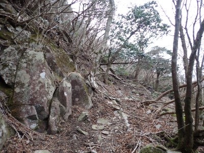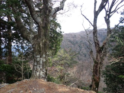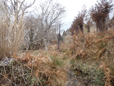 別所駐車場は意外と車が少ない。気温は低いが凍結はせず、もちろん雪もない。奉弊殿でお参りをして鬼杉方面へともう慣れた道程だ。上宮の神殿建替工事で途中通行止めなので登山者は少ないようで、奉弊殿では私以外に3組しか見当たらない。鬼杉へ向かうルートは静かなもので私しか歩いていないようだ。衣ケ池から滝へ向かう。それまでの道と打って変わって歩きにくい。登山道は有難い物で整備されていないルートは本当に歩くのが大変である。雪がちらほら降ってきたので雨具の上着だけ着る。滝に近づくにつれて石の大きさが大きくなっているような気がする。そうなると両手両足での歩行となる。前回(一昨年)ここは歩いたので迷うことなく滝にぶつかった。もちろん全く氷結していなくて誰もいない。前回はここから南岳へと滝の右側をよじ登って行ったが、団体で歩けるようなルートではない。Wの滝は産霊神社を目指すことになるので反対の左側(右岸側)を行くことになる。しかし、明確な道はなく、印もない。とりあえず、絶壁の際をなぞるように進むというか方向的には戻るように西側の谷へと進み小さな尾根沿いに登り始めるが、とんでもない斜度になってきて滑ったら危険なルートに入り込んでしまった。とろどころ赤テープがあるが、おそらく積雪時に歩いた方が付けたのではないだろうか。30分ほど奮闘してようやく足だけで歩行できる場所に行き着いた。いやー疲れた・・・・・。ピークに立つと北岳が目の前に現れて眺めを楽しみ、鹿ネット沿いに歩いて産霊神社に無事到着。テーブルには男女1組の登山者がランチを楽しんでいて挨拶程度の会話をした。ここで私もランチだが風も強くても寒い。暖かいカップスープもすぐに冷めてきてのんびりと過ごすなんてできない。Wの滝も立ち寄ろうと考えたが、その気にならず下山開始。慣れた参道を降った。途中で2組の参拝客(登山者ではない)が登ってきた。1組は小さな子供を2人とご夫婦、昔私が若かった頃に同じように子供を連れて参拝ついでにスニーカで登ったことを思いだした。
