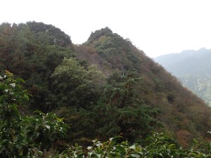 | 耶馬渓はこんな形が多い | ジグザクだが急斜面 | 山頂にて(10:05) |