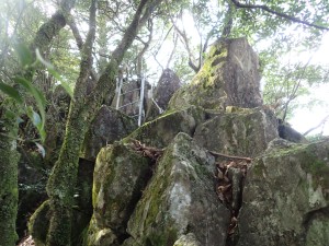 | ヤセ尾根が続く | 足の置き場に悩む場所もある | 巨石が立ちはだかって狭い場所もある |