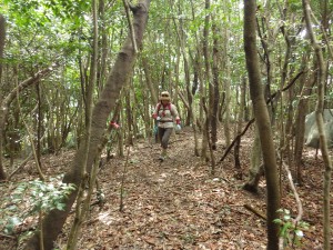 | 急斜面を慎重に降る | 大穴との分岐点(12:34) | 漫画に出てくるような奇岩 |