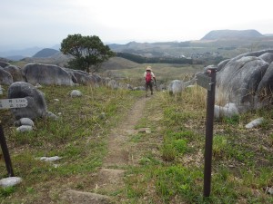 | 中峠(11:50) | 野焼きの終わった道は炭が着くので注意 | 権現山や周防台を背に |