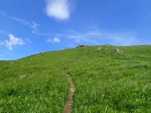 | カキランも咲いている | 中峠付近から急登して稜線目指す | 周防台を背に |