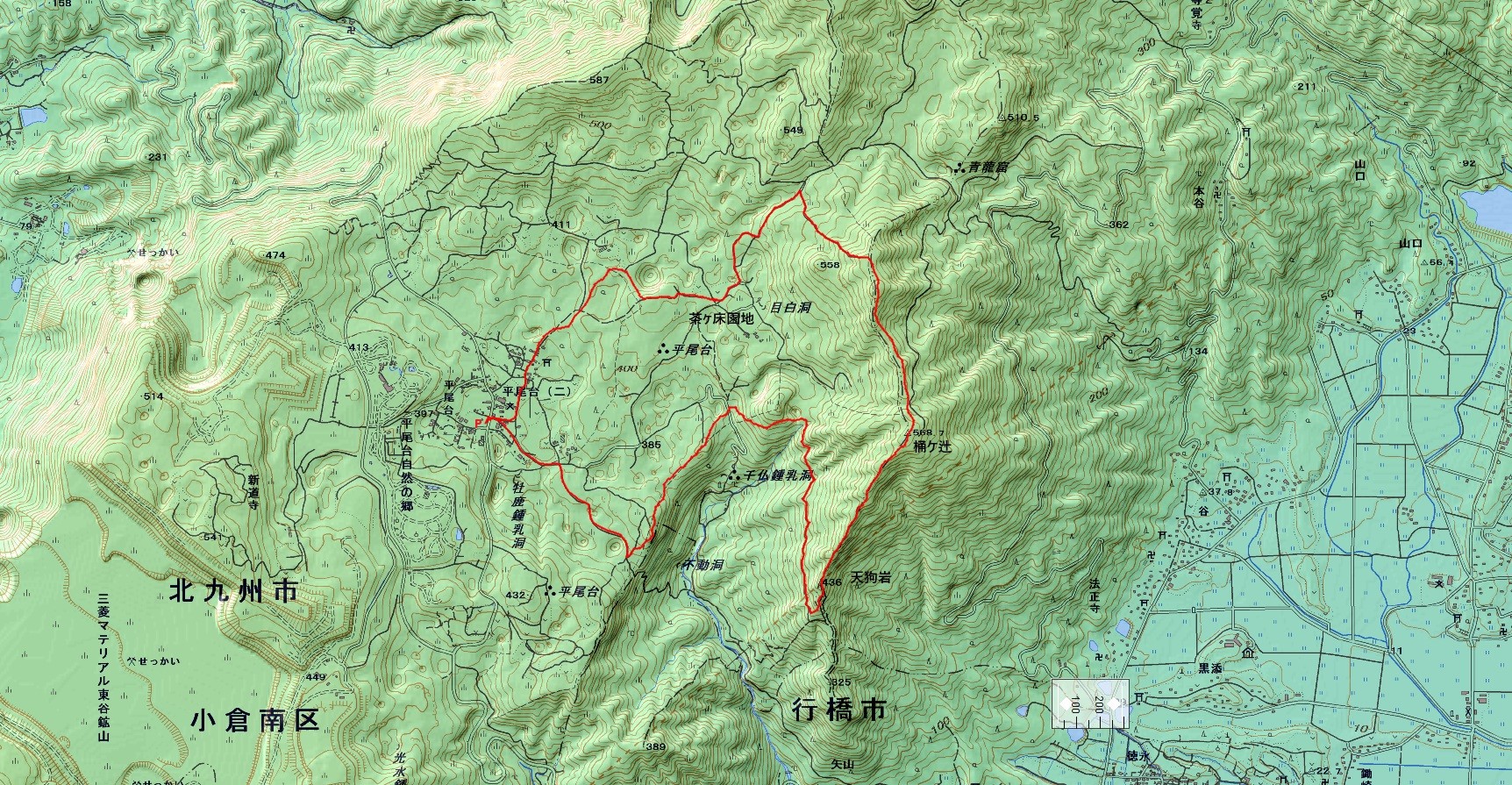 平尾台登山コース(GPSによる歩行軌跡)