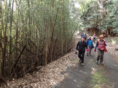 公民館前−(25分)−常盤登山口−(30分)−立石−(20分)−いっぷく望−(15分)−山頂−(7分)−ストーンサークル−(10分)−山頂−(30分)−遊歩道入口−(55分)−有寺※休憩含まず。全行程で4時間でした。 |
