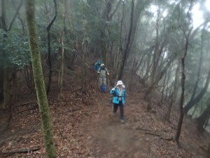| ガスが濃くなってきた | 山頂直下の急登 | 犬鳴山頂上(14:00) |