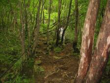 | 杉林から自然林を歩く | 新村との分岐 | もうすぐ山頂 |