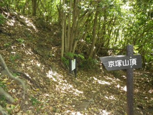 | 史跡の説明板が設置されている | 京塚山頂に立ち寄る | タツナミソウ |