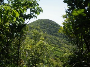 2013年4月27日(土) 天気 晴れ ■出発時間:午前6時(自宅) 宮ノ山登山口着:午前11時 ■メンバー:家内と私の2名 九州道を降りて錫山街道を走ると目の前に三つのピークが(妻はだんご三兄弟と呼んだ)並ぶユニークな山が見えてくる。近づけば、金峰と名が付く広告や道標があるのでそれが金峰山であるとわかる。そして南さつま市の街中を抜けて海が近付くと岬に富士型のような、目立つ山が見えてくる。それがなぜか初めて見る私でも野間岳とわかる。そう、「のまー」とした形と言う表現がそう連想させたのだと思う。この山を見るとやはり登らないわけにはいかない。 11時ちょうど リアス式海岸沿いにある宮ノ山登山口に着く。駐車スペースは広く「舟が崎自然公園」の駐車場となっているが、私たち以外、誰もいない。時間は少し早いが海を見ながらランチを楽しむ。 宮ノ山登山口には笠沙宮(かささのみや)跡の案内図と名の由来があって、ここが皇孫発祥の大ロマンを秘めた地であると説明がある。登山は自然を楽しむのが大きな目的であるが、古人が残した史跡などを観るのも楽しいではないか。 登山口からドルメン式墳墓、京塚、積石塚と次々に史跡を見て進む。いつのまにか登山道となるが、ふと道票を見ると「野間岳山頂約5.0km」とある。「おかしい?」道を間違ったか・・・登山口では確か3.0kmであったはずがここにきて距離が延びてしまった。 しかしどう考えても見逃すはずはない。地図とコンパスで確かめるが、現在地を予測できない。持参のGPSで見ればある程度は予測できそうだが、何しろ地図は25000分の1である。もし経緯度がわかっても誤差が大きすぎる。と色々と考えた挙句、道票が間違っているのではないかということにしてそのまま進む。進路を北にすると山腹の平坦な道となってやがて林道に出てどうやら女岳の下を歩いているようだ。見上げると青空と木々の緑が、まるで造られた画像のようにくっきりと目に映る。しばらく砂利道の林道を歩くと車道に出る。ここからの展望も素晴らしい。車道に出ると右に進むと野間神社である。鳥居をくぐりお参りをして登山道に踏み込む。樹林の中の斜面を登り始める。すぐに太郎木場登山口と道標があり、下山はここより降る予定である。第1展望所は西側が開けていて巨岩に立つと南の展望も望める。登山道は、階段の上り道となり、鎖場をクリアすると第2展望所に出る。ここからは南側が開けていて今歩いて来たコースの稜線や遠くに開聞岳も見える。さらに巨石の多い急斜面を登りきると急に開けて三角点のある頂上に到着である。三角点のある場所は展望がないが、祠を抜けて巨石群の上に立つと本日一番の絶景である。時間もあるのでしばらくのんびりしていると男性二人の登山者が登ってきて聞くと神社からだと言う。そして景色を見ながらのランチタイムを楽しんでいた。私たちはここから東に片浦コースを降る。樹林帯の中、緩やかに降ると大きな石が現れる。石の間をくぐって振り返ると笠沙石とある。さらに降ると視界が開け、周りに人工的な木々を感じる。道は斜めに分かれてなんとなく展望所だとわかる。するとやはり視界が開け、再び絶景に出会う。振り返ると野間岳の頂上部が姿を現し、360度、楽しませてくれる。展望を楽しんで再び登山道に戻るが、ここからはコンクリートの坂道を降る。そして車道に出ると神社までトボトボと歩く。神社から再び登山道に入り、太郎木場コースを下山する。こちらは谷間を降るので石がゴロゴロとある。しかしそれもそう長く続かない。民家が見えてくると車道に出てそのまま車道を降ると国道に出る。そこから宮ノ山登山口まで車道をボチボチ歩く。途中でバナナの花を初めて見て驚いたのが、本日の締めであった。 その後、今夜の宿へ移動する。今日も自然に山に地元の人に感謝である。 翌日は磯間嶽 ■コースタイム 宮ノ山登山口−(65分)-野間神社-(30分)-野間岳頂上-(30分)-片浦コース車道出合い-(20分)-野間神社-(30分)-太郎木場登山口-(30分)-宮ノ山登山口 ※休憩時間は含くまれていません。全行程で約4時間でした。 |