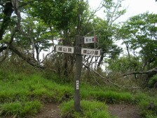| 巨岩 | 冷水コースとの分岐 | 三尾コースへの分岐 |