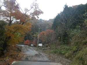 | 紅葉とカラス | 左に入ると大音の滝 | 橋を渡って駐車 |