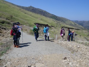 | 黒岩山・泉水山の稜線がきれいである | 多くの登山者が下山してくる(法華院に宿泊したとか) | コンクリートの道を行く |