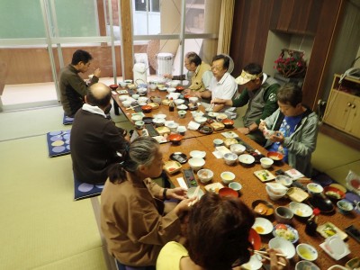 翌日、朝食を終え、宿にお別れをする。この二日間、自然に山にそして宿の方たち、仲間に感謝!!(コースタイム省略) |
