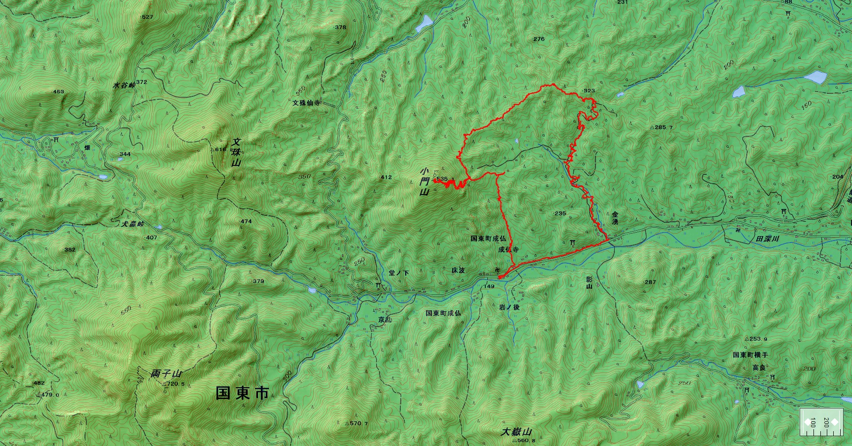 小門山登山コース(GPSによる歩行軌跡) 縮尺約 1/25000