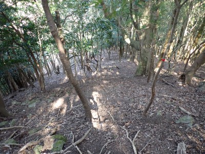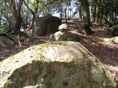 先々週に続き国東半島の山巡りに出かけた。今回は前回予定していた残りの山、登山口の確認は終わっているので迷うことなくスタート。まずは落合山、古く荒れた作業道を歩くが、途中でなくなったり道が分かれたりで地図がないととんでもない場所に行きそうだ。荒れた道は小石がゴロゴロして歩きにくい。急勾配を避けてジグザクに進めるのは救いだ。いよいよ終点間近の場所で「道がない」。地図を確認するが方向的には間違いないし、他に踏み跡もない。踏み固まれていない斜面は、頼れる樹もなく石もない。まともに歩くとズルズルと滑る。油断するとあっという間に谷底に滑落するであろう。「しょうがない這って行くか」と決断し進む。幸いその距離は短く、すぐに道らしき道に辿り着く。ほっとして数メートル進むと作業道終点で赤テープがたくさんある。ここから右の斜面に取付き登り切ると鞍部だ。鞍部から東へ尾根を行き落合山頂上。城跡なのか平坦で広場のような場所がある。落合山から往路鞍部まで戻り、今度は稲川山を目指す。一旦北方向へ進み尾根に取付くと西へと進みピークから一旦西南へと降る。再び登り返すと稲川山だ。南側が開けて展望が良い。休憩には良い場所だ。そして次は大嶽山、今度は北へ延びる尾根を降る。鞍部から登り返して広い山頂だ。展望はないが、切り開いた頂上は明るく広い。少々早いが、一人でランチタイム。今日も誰一人出合うこともない寂しい山だ。独り言を言いながら静かなひとときを楽しむ。下山は西へと降るが岩場の急斜面でトラロープはあるものの頼れない。持参した補助ロープを使い、無事に鞍部へ降りた。整備されていない登山道を単独で歩く場合はヘルメットとロープは必須だ。鞍部から南へと降る。まともな道がなくテープも見失ったが無事棚田跡に出る。登山口に出ると車道を20分程度歩き、スタート地点に戻りコーヒーを淹れ休憩。そして弥箇岳登山口へ。古いガードレールの先が登山口。ゴミを捨てる人がいるのがとても残念だ。川沿いに入り込み左の山手に取付く。何と苔むした岩だらけの斜面には驚く。そしてその石の中を進む。斜めに山腹を行くと土の斜面になる。とても不思議な地形だ。急斜面を喘ぐと細い尾根になる。時折巨石が現れる。急峻な尾根が続き緩やかな尾根に出ると頂上だ。樹林帯に中の狭い場所で三角点があるとは思えない。頂上から西へ延びる尾根は歩いてみたくなる明るい樹林帯だ。両子大橋の方へ出るはずなのでそちらからのルートができれば面白いかもしれない。下山は往路を戻るが、この急斜面は下山の方が神経も足の負担も大きい。無事下山したのは良いが、運転中に足をつってしまった。やはりクールダウンが必要だと反省。今日も山に自然に感謝!!