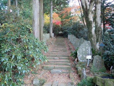 | 国東塔(県指定有形文化財) | コンクリートの道を歩く | シャクナゲがたくさん植えられている | |
