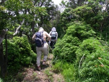 山頂はガスで視界が利かなかったのですが、しばらく休憩をしているとガスが抜けてきました。下山はそのまま往路を下ります。 再び車に乗った我々は今度は石堂山を目指します。林道を分岐地点まで戻り、井戸内峠へと進みます。きれいに舗装された林道です。井戸内峠に着くと標識と説明板があります。注意事項などが書かれています。現在の標高が890mとあります。以前はここから私有地で鎖がかけられ車は入れなかったそうです。砂利の林道をしばらく行くと駐車できる広い場所に出ます。車はここに停めます。砂利道をさらに歩くと登山口です。登山届けも設置されていますので記入し、出発です。(午前10時)登山口から杉林の急登を歩き、やがて緩やかな上りとなります。15分程度でAコースとBコースと標識がある六合目に着きます。ここからは尾根伝いに歩きます。(ちなみに今回のコースはBコースらしい)西側の視界が開け市房山が望めます。急登に喘ぎ緩やかな道に出ると七合目は近くです。七合目を過ぎるとすぐに日の丸がある開けた場所に出ます。ここからは天包山が望めます。緩やかな道から急登すると林道に飛び出ます。林道を右手に進むと左手に登山道の標識があります。再び尾根歩きです。眺めは最高ですが、暑さが応えます。すぐに六合目です。一つ目のピークを喘ぎ登ると展望台とも言って良い岩があります。しばらく展望を楽しんだら再びピークを目指します。上りは続きます。さらにとヤセ尾根を進むと鎖場があり、最後の急登を喘ぐと山頂です。山頂は北側以外の展望が開けています。山頂で昼食を済ませ、下山は往路を下ります。途中で雨が降ってきました。 <参考コースタイム> 天包山⇒登山口−(5分)−坊主岩-(10分)-九合目-(17分)−山頂-(18分)登山口 ※休憩は含んでいません。休憩を入れても往復1時間程度です。 石堂山⇒登山口-(15分)-6合目−(60分)−林道出合-(40分)-九合目-(25分)-山頂−(40分)−林道出合−(50分)−登山口 ※休憩は含んでいません。全行程で約4.5時間でした。 |