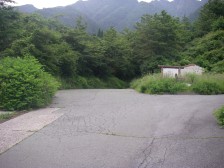 | 三叉路は真っ直ぐ(お地蔵さんがある) | 登山口手前の駐車スペースに停める | 登山口 |