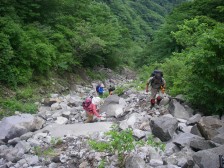 | 登山口駐車スペース | 砂防ダム下を横断 | ガレバを歩く |