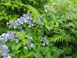 | 木の階段が始まる | 下りは滑りやすい | アジサイだ |