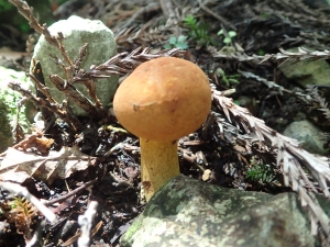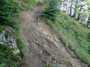 | 長い道程が始まる | キノコ発見!! | 石ころの登山道だ |