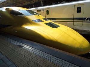 | 新大阪駅で遅い昼食(14:32〜) | 何と黄色い新幹線(ドクターイエロー) | |