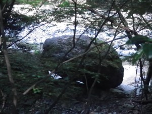 | 黒金尾根コースへ | 橋の下を歩く | 岩がつるつるしてそうだ |