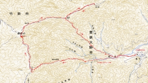 2011年9月23日(金)祝日 天気 晴れ 久しぶりに妻が一泊で山に行ける段取りをしていたので妻の前々からの要望でもあった黒金山尾根を歩くことにした。黒金山尾根と「山と高原地図(昭文社)」には記載されているが、現地の案内表示は黒金尾根となっていた。黒金山らしきピークはないのでどちらが本当なのか、名前の由来は?と疑問が浮かぶ。黒金とは、所謂「鉄」のことで、尾平鉱山では「銀」が採取されたらしいので昔はこの辺りでも鉄が採れれていたのかも知れない。色々と想像するだけで面白い。 ■出発時間: 午前5時半(自宅) ■メンバー: 家内と私の2人 国道10号線から宇佐別府道を経て途中別府SAで休憩し、米良I.Cで降りて再び10号線、そして中九州道の整備区間である犬飼大野道を経て大野I.Cで降りて南に向かい地方道410号の細い道を尾平へと走り、「もみ志や旅館」を右に見るとすぐに右手に有料駐車場がある。お金は、旅館に支払うのだが、管理人が駐車している車のワイパーに集金袋を置くのでそれにお金を入れて回収BOXに投函することになっている。9時20分、駐車場は、ほぼ満杯で1組だけ登山準備をしていた。私たちも一足遅れて出発だ。駐車場の奥に登山届のある登山口である。入り込むとすぐに目の前が開け、祖母山と障子岳までの荒々しい稜線が目に飛び込む。左手にはトイレがあるが使用禁止となっていた。幅の広い砂利道はすぐに終わり、川上渓谷沿いの登山道となる。橋が見えると宮原コースとの分岐だ。そのまま橋の下を渓谷沿いに歩く。渓谷はつるつるした薄茶色の岩がスラブのように続くナメ床である。ところどころに大きな丸くなった岩も面白い。右岸をしばらく歩くが橋を渡って左岸に渡る。すぐにまた支流を渡る橋がある。小さな沢を横断し、尾根に取り付いたと思ったら再び沢を見る。崩れた木の橋を見て沢を横断すると川上渓谷との分岐標識があっていよいよ尾根に取り付く。最初から結構厳しい上りが続く。ザックの重さがここにきて堪える。ヤセ尾根に出ると大きな松の木が見事である。断崖絶壁を左に見ながら高度を上げる。標高900mの表示からは100mごとに標識があり、その度に休憩をする。とにかくきつい。標高1100m辺りからはスズタケが多くなる。1200mの標識がある場所は休憩ポイントにはちょうど良い場所だ。栂(つが)原生林と書かれている。標高1400mの標識を過ぎ、天狗の水場に着く。水量はほとんどない。すぐに天狗の岩場に出る。なるほどいざというときはビバークできそうだ。標高1500mを過ぎると大きな岩がごろごろしていて歩きづらい。ここを一気に登ると左手に天狗岩が見えてきた。稜線に出ると分岐標識がある。時計を見ると13時54分だ。予想以上に時間がかかり、この調子で行くとテント場につくのは17時頃になるのではと少々心配だが、天狗岩に立ち寄ることに。 ページへ |