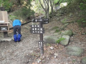 | 中登山道登山口 | ここまで一緒に歩いた方とお別れ | 登山届けがある(左は表登山道へ、ここは真っ直ぐ) |