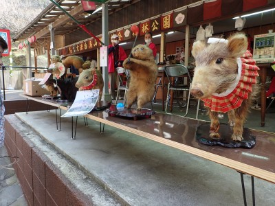 ここで反対から登ってきた賑やかなグループに逢う。写真を撮って左に降ると三叉路だが、三高山までピストンすることにした。前方に他のグループが歩き、先ほどのグループは私たちの後ろを来る。この時期、結構人気の山だとつくづく思う。三高山のピストンを終え、三叉路に戻ると今度は北へ大法山を目指す。ヌタ場を過ぎて樹林帯の尾根を歩くとピークとは思えない場所に大法山の山頂標識がある。地図を見ても稜線のちょっと盛り上がった場所で三角点でもない。なぜここを山頂としたか不思議である。道は、突然巨石群が現れて「針の耳」と名は付いていないが岩の穴をくぐり抜け、鉄橋を渡る。道はコンクリートの道でベンチも設置されている。今日は風があるのでこベンチで昼食をとる。食べていると白馬山でお会いしたグループが大法山へと通り過ぎていった。食事を終え第一展望台へ、先ほどのグループ他たくさんの人がここで昼食をとっていた。満員御礼だ。私たちは展望台で三角点の確認をしてそのまま進む。第二展望台まで来ると折り返して尾根から谷間へと下る道を探する。道標がないが壊れた道標らしきものを見つけた。地形図を見ながら降ると腰までの笹の道は階段になっているのいに気づく。すぐに立派な道標にぶつかる。谷間は歩きづらいがすぐに鬼子母神のお堂に着く。一息ついて石段を降り広い道に出ると新しい東屋がある。ここから舗装道になり、三光園の下まで来ると梅林公園への道標があるので入り込む。山腹を巻きながら公園に飛び出すと大勢の人で賑わっていた。梅の餅を買って帰りは酒蔵「寒北斗酒造」で今夜のお酒を仕入れて帰路につく。夕食は新鮮な野菜と美味しいお酒が待っていると思うと長時間の運転も気が楽になる。