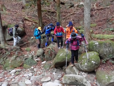 | 今回は9名の参加者 | 何度か渡渉する | あれ、降ってる? | |