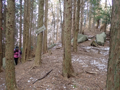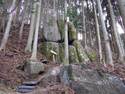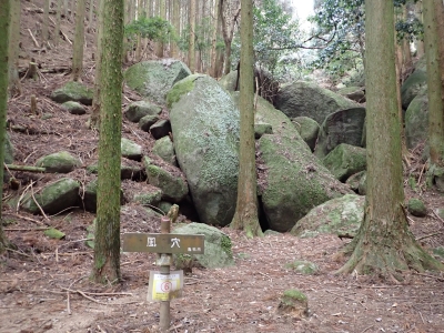 | 谷間は丸味のある巨石がたくさんある | 寄り添い岩(9:30) | 植林帯の急斜面を進む | |