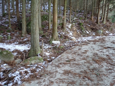 | 林道から左へ再び登山道へ | 雪が少しある | またまた林道に出る(9:45) | |