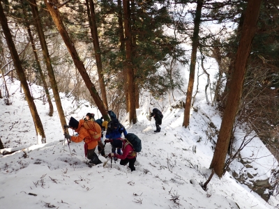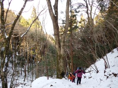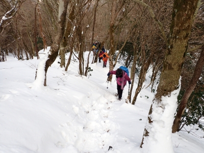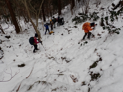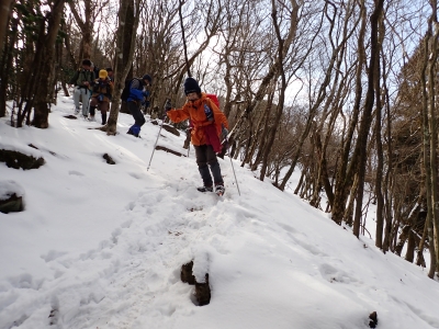| 急斜面をゆっくりと進む | 雪が少し深くなってきた | 結構きつい登り | |